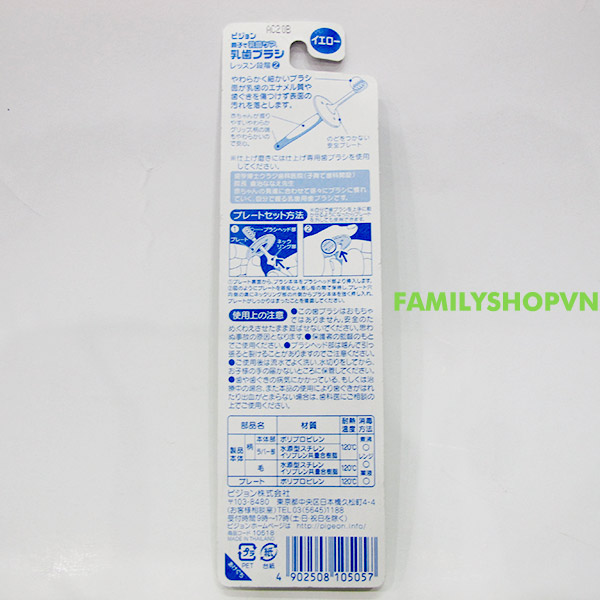 Bàn chải dùng rơ lưỡi và đánh răng sữa cho bé từ 8 dến 12 tháng tuổi với bề mặt bàn chải cực kỳ mềm mại được làm bằng cao su sạch không gây tổn hại nướu răng và men răng, bàn chải được xử lý tiệt trùng bằng công nghệ cao đảm bảo an toàn tuyệt đối cho bé. Ngoài ra bàn chải còn có tấm chắn an toàn ngăn không cho bé chọc sâu vào cổ họng.