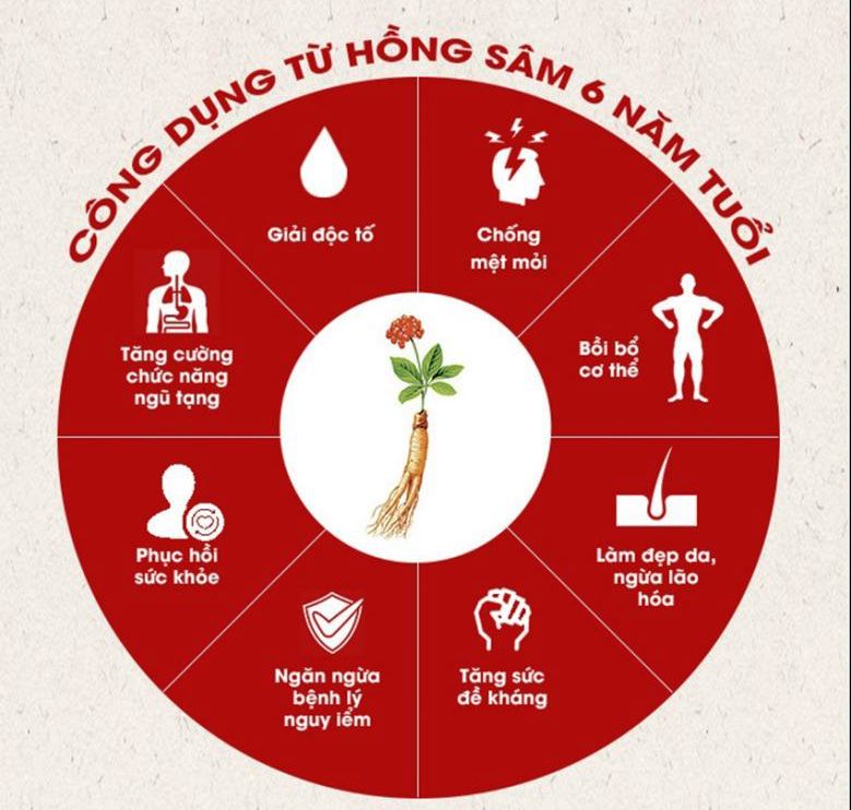 - Hồng sâm lát tẩm mật KGC hộp 6 gói giúp điều hòa hoạt động tim, bảo vệ tế bào gan, giúp tái tạo tế bào gan mới, giải độc gan, bổ thận tráng dương.