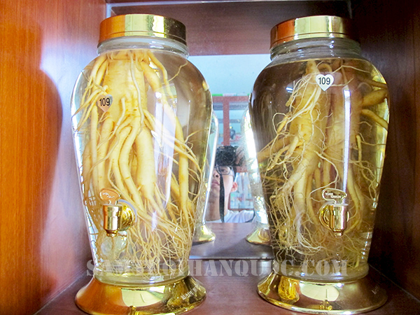 Để ngâm nhân sâm Hàn Quốc đẹp khách lưu ý ngâm củ nhân sâm theo hướng đầu to cho lên gần nắp ( dùng dây cước treo) . Ở bình ngâm rượu Hàn Quốc có thiết kế chỗ để treo nhân sâm, bình Yongcheon được thiết kế chuyên dụng ngâm nhân sâm nên khi ngâm nhân sâm sẽ rất đẹp so với các loại bình khác .