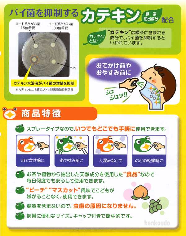 Thuốc xịt họng ngăn ngừa và trị ho cho bé của Nhật, chai 30g với thành phần Maltitol và chiết xuất từ trà xanh, gừng sẽ giúp bảo vệ họng của bé chống lại vi trùng, ngăn ngừa và trị viêm họng, ho của trẻ. Sản phẩm tuyệt đối an toàn và không gây sâu răng vì không có chứa đường.
